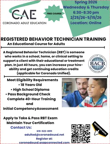 Email us at adult.ed@coronadousd.net if you have any questions. Or click on the "Registration" link to register online.